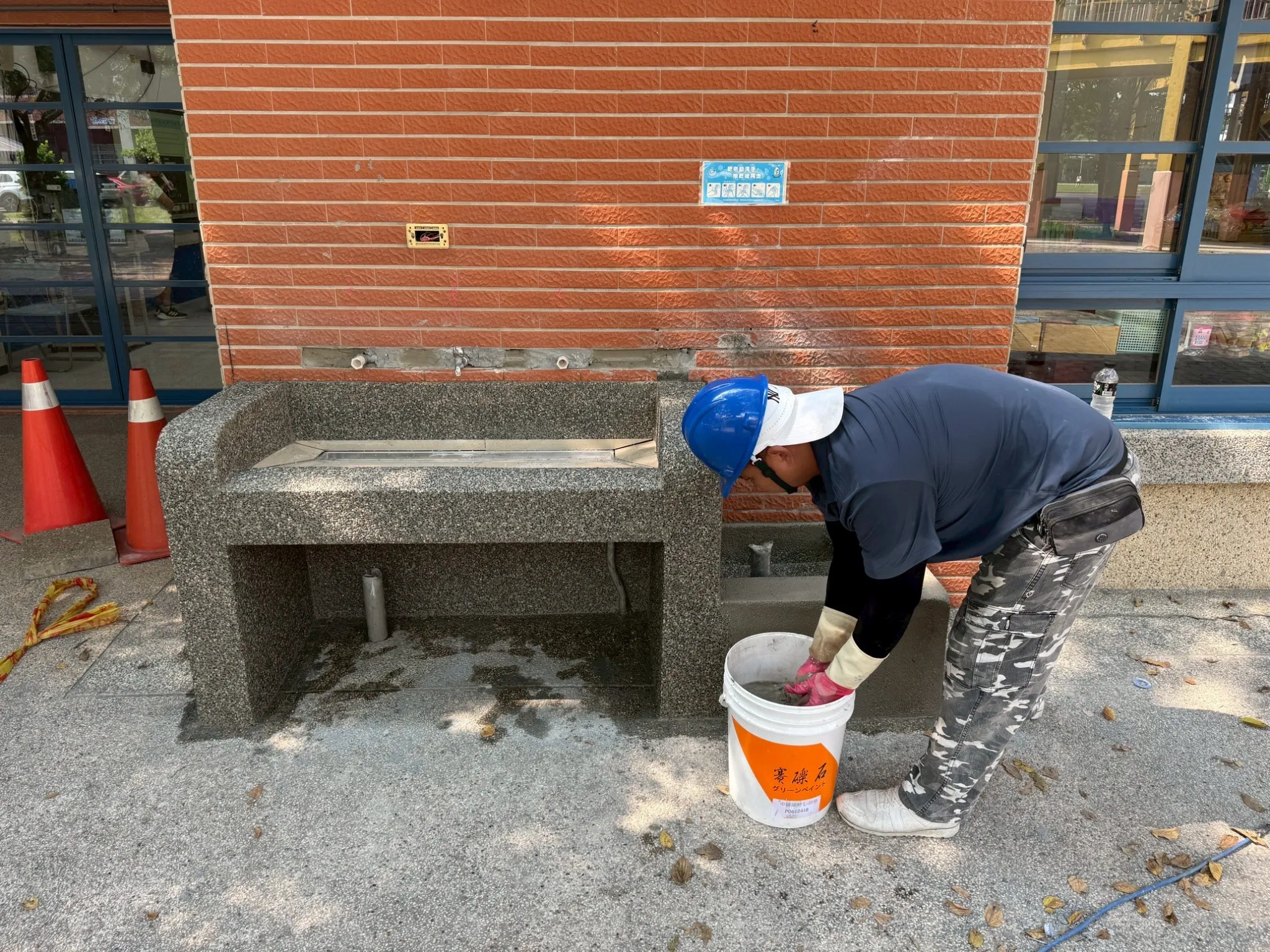 施工內容包含校園走廊採光罩新設、遮雨設施工程與洗手台設備更新。