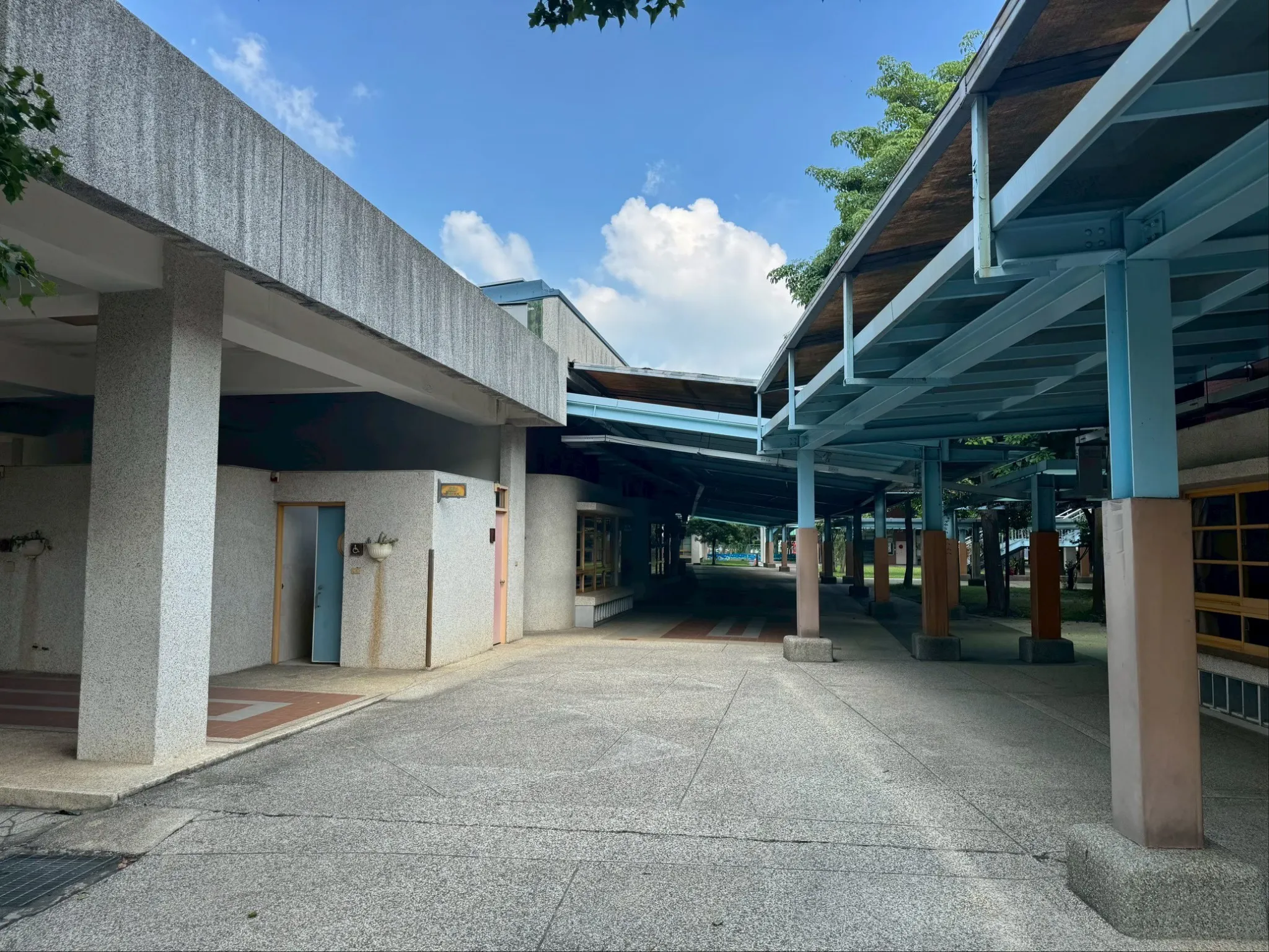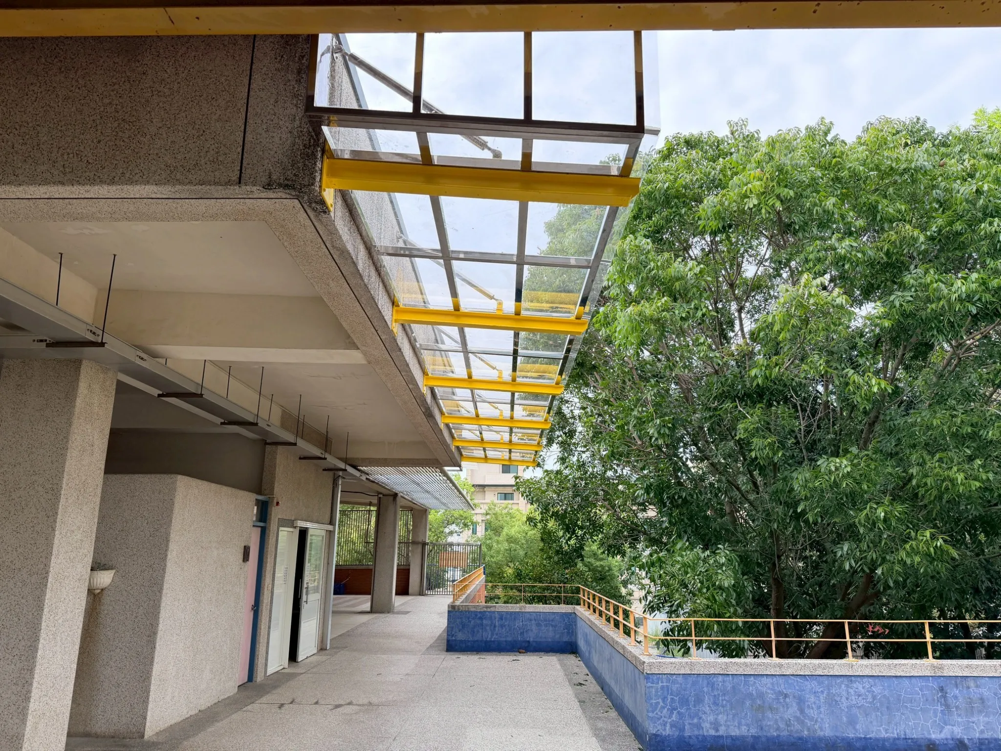 透過採光罩結構施工與校園設施改善工程,提升走廊通行遮蔽效果,改善雨天淋濕問題,同時更新洗手台設備,強化校園公共設施的安全性與使用便利性。
